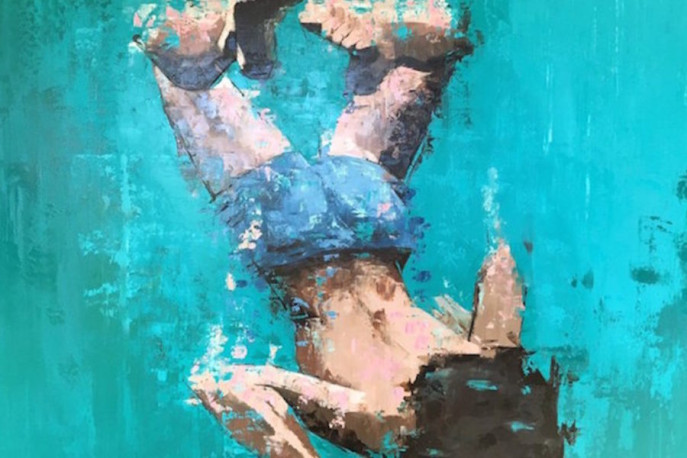 Camille Page’s underwater paintings blend a perfect amount of the figurative with the abstract. Painting with a palette knife in a kind of push-pull-combination of heavy applications of paint and fierce scrapings, Page creates large paintings that feel familiar and momentous.