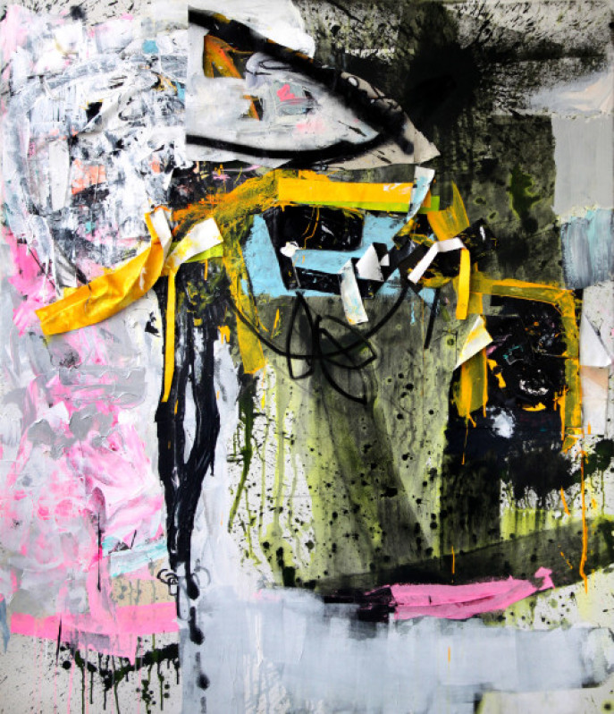 In his own words, “I have had a long-standing interest in creating paintings that mix muscular abstraction with a playful cartoonist sensibility. The results have been commanding and humorous. My most recent work has included a disruption of my painting’s surfaces with collage in a raw and powerful way.”